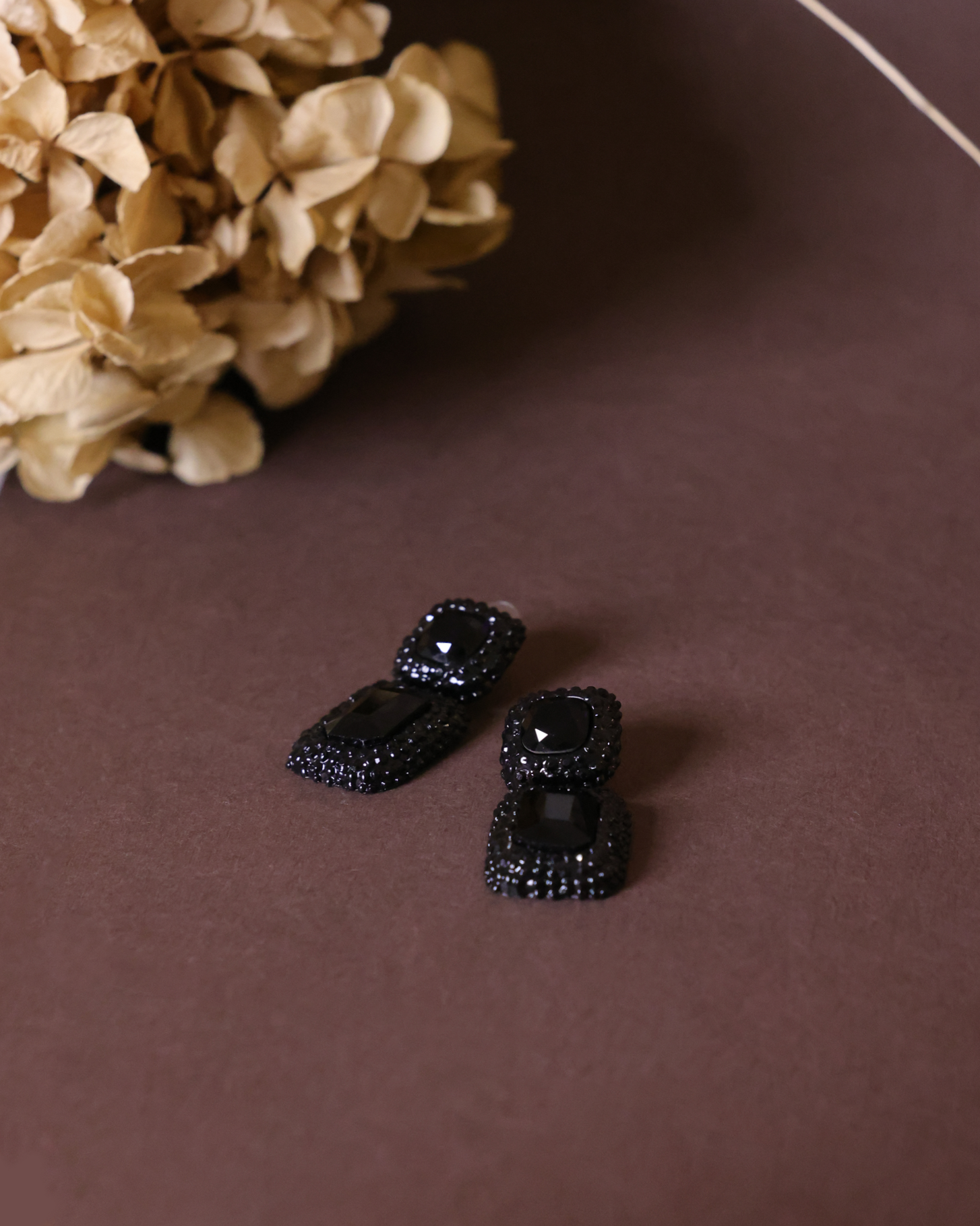 This classy pair of black earrings are set with black shiny stone in the middle. It gives an elevate sense of fashion and glitters in your ear.