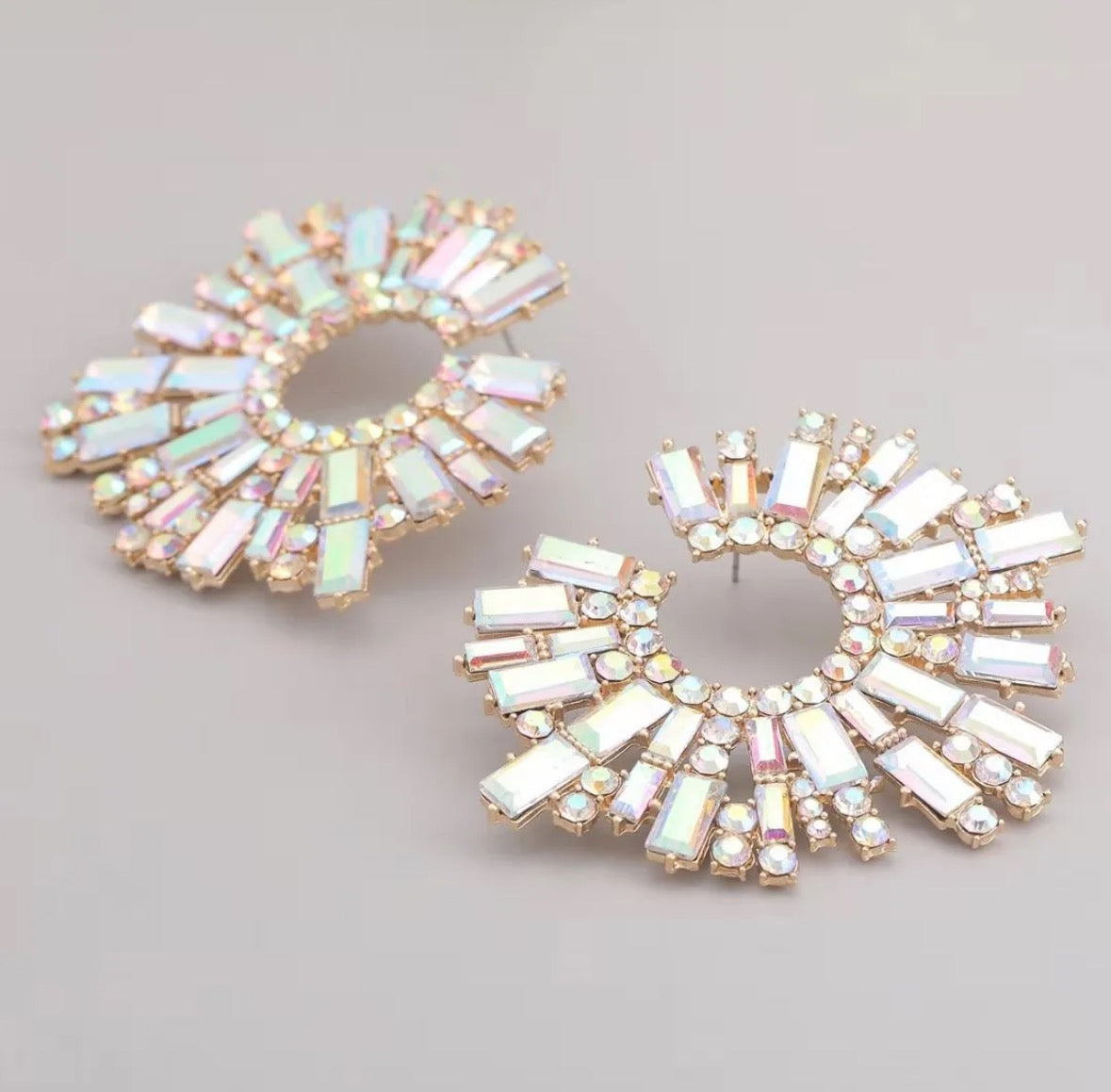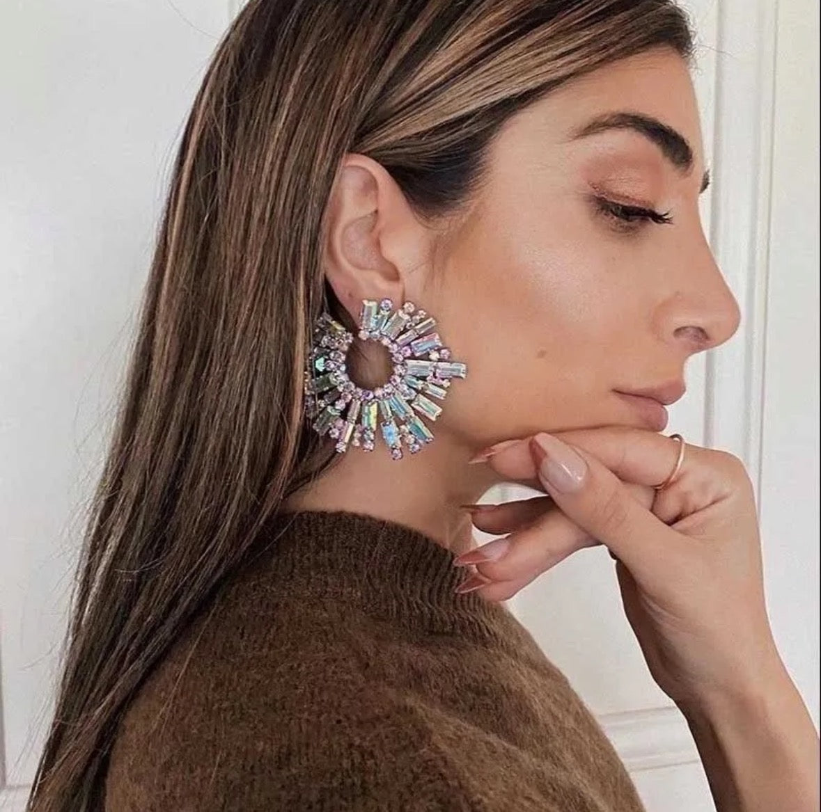 This beautiful sunflower disc rhinestone earrings can be worn for a daytime outing or an evening out as well. It pairs well with jeans, shirts, tops, kurtas and saris.