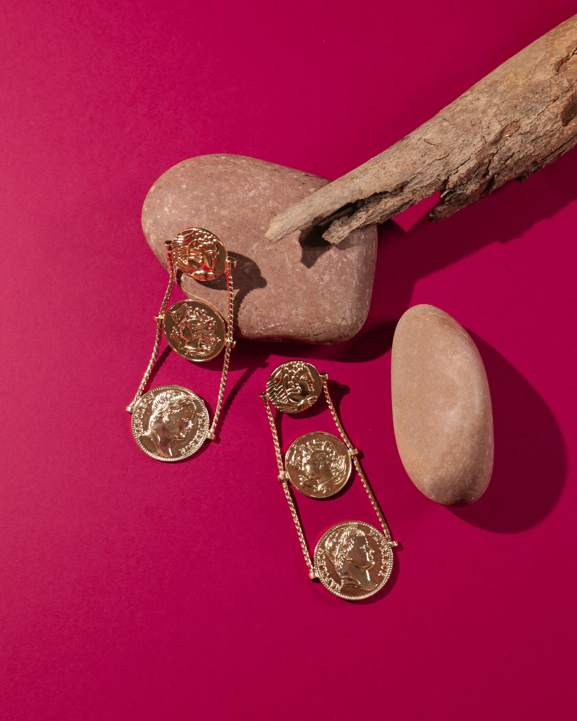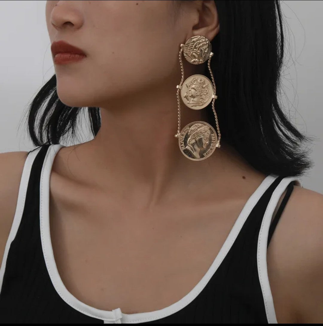 Greeks know how to make the best earrings and we bring you a Greek-inspired pair to make you look stylish and glamorous at the same time. Three different-sized coins with 18K gold polish to keep the shine on you.