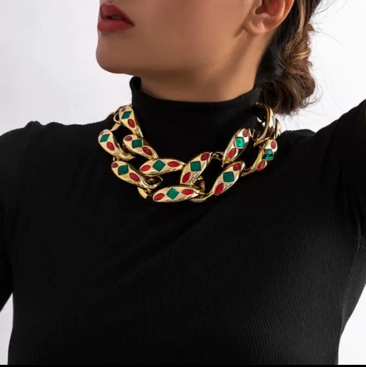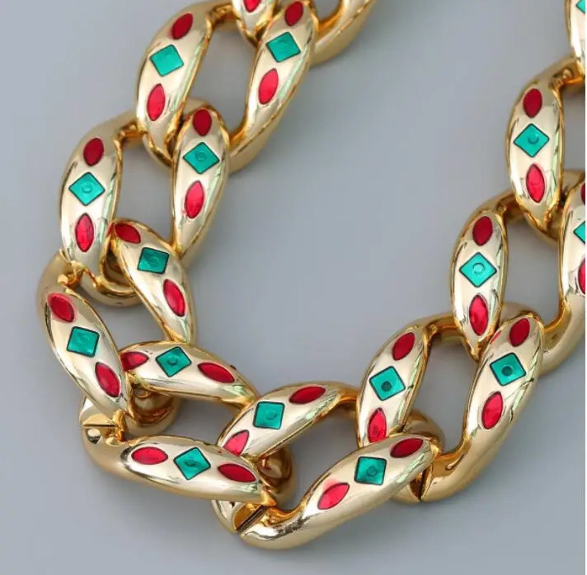 A fancy hip hop yet light weight necklace. The enamel has been added to bring lovely colours to the beautiful necklace for you.