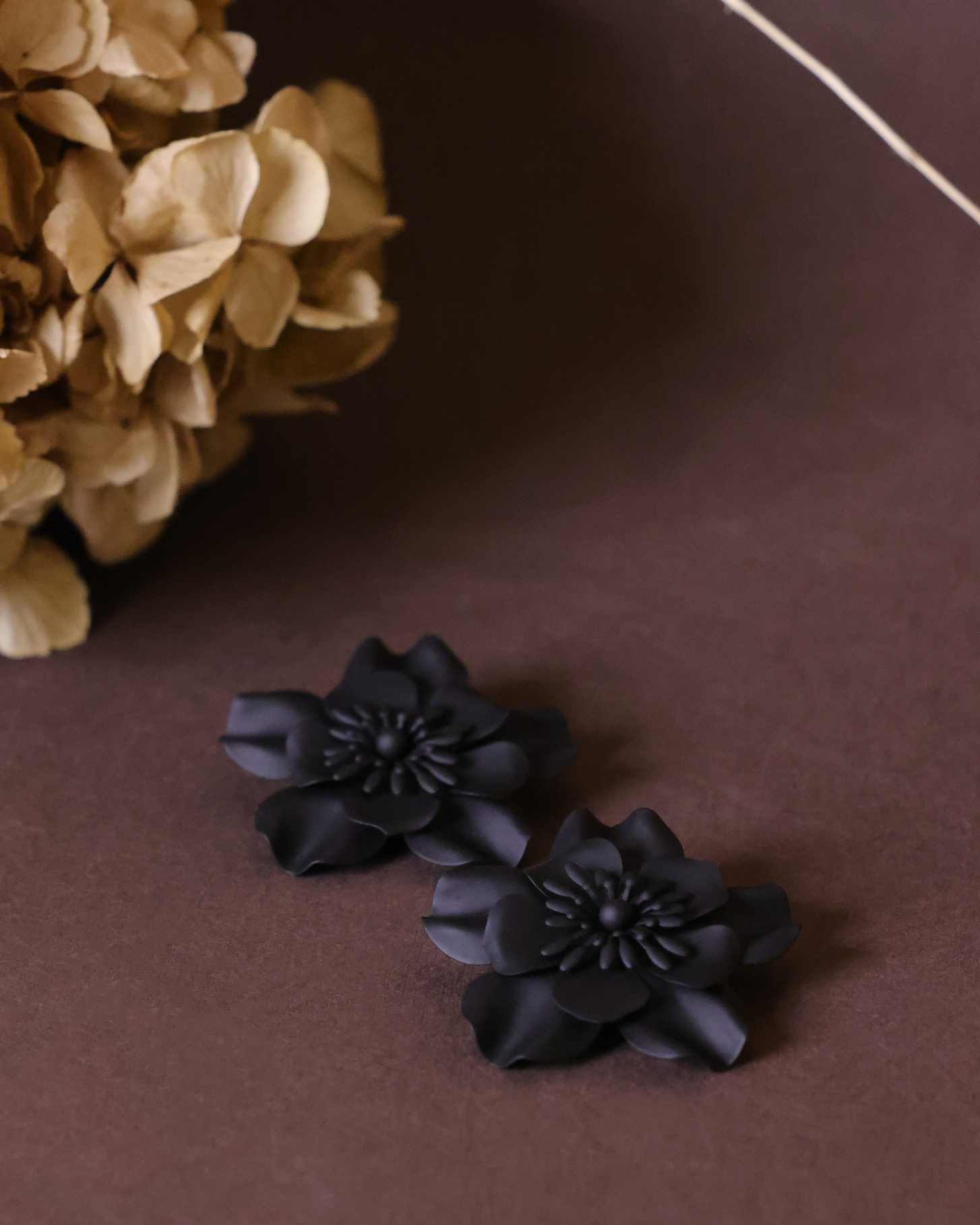 These matt black earrings are metal and hard. It brings so much style to your outfit, be it a black outfit or of any other colour. The earrings stand out and are hard to miss.