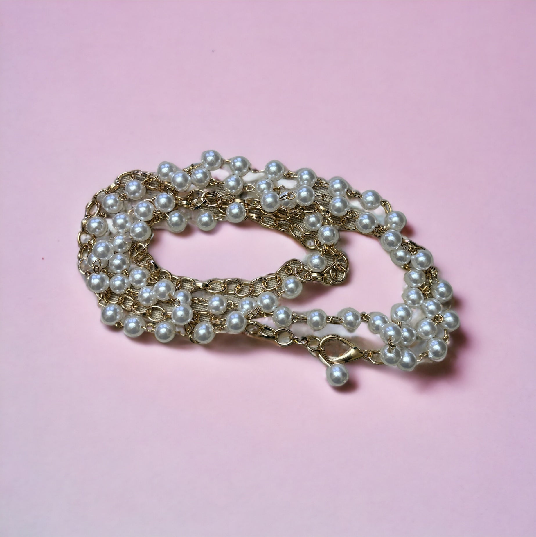 Pearl belt with two layers. With gold polish chain that holds the pearls together.