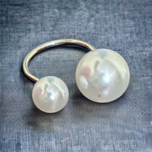 Double pearl mini ring for the middle of your finger or your pinky finger. It’s an adjustable ring to fit into any finger.