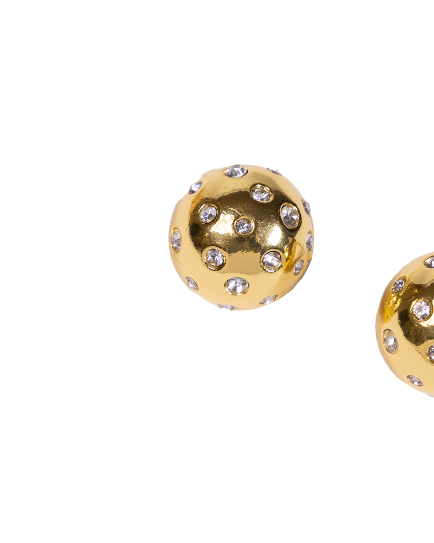 Gold stud earrings with whote stones sprinkled over it with even spaces. These earrings are meant for a smart look be it day or night.