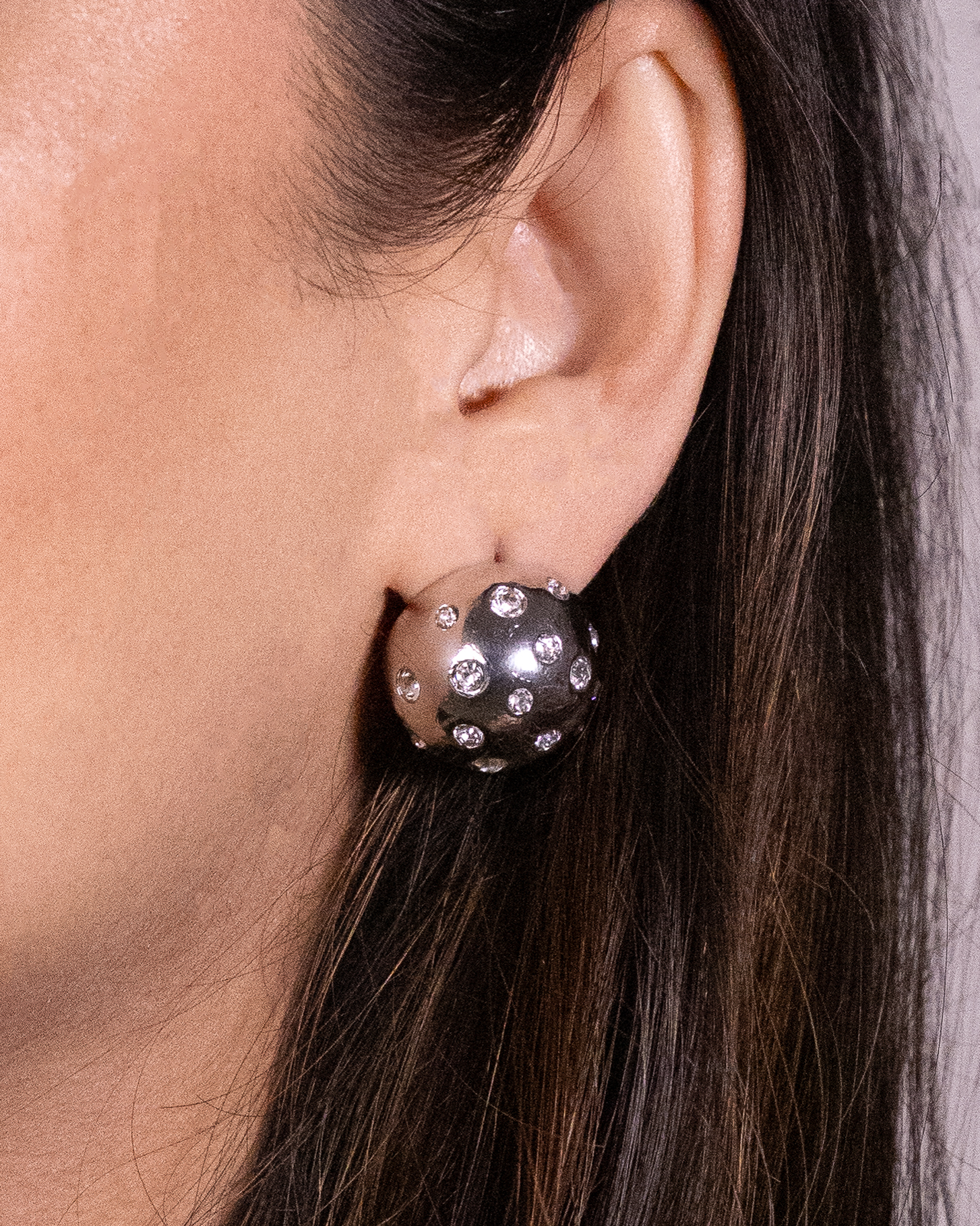 Round silver with white stones stud earrings