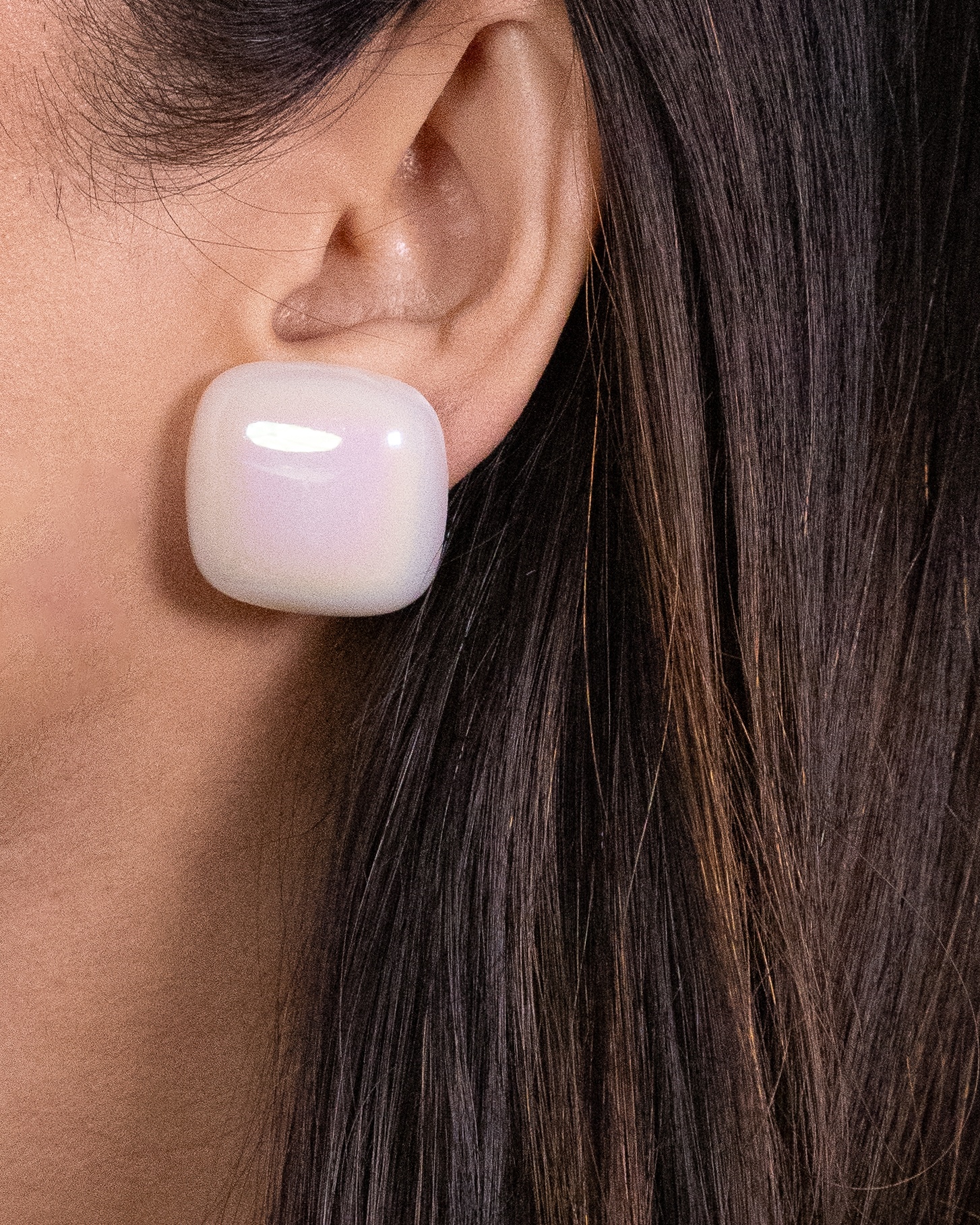 The glazing earrings shine under the light that falls on it. It needs no other jewelry to go with it. It's a standalone piece and keeps you glam. The earrings are made of a mix of liquid pearl and enamel.