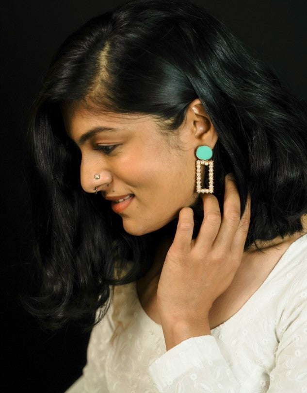 How to style it: You can wear it with both Indian and western outfits. It will look great on white outfits where the teal of the earrings pop out.