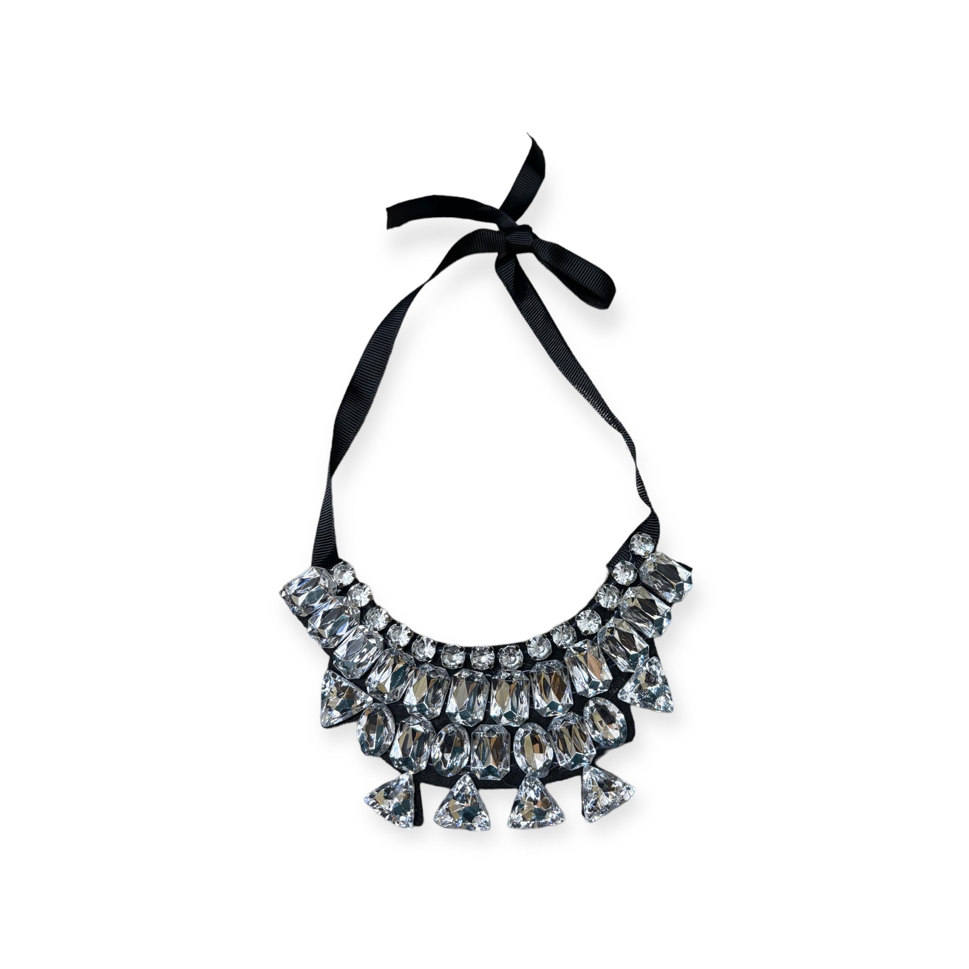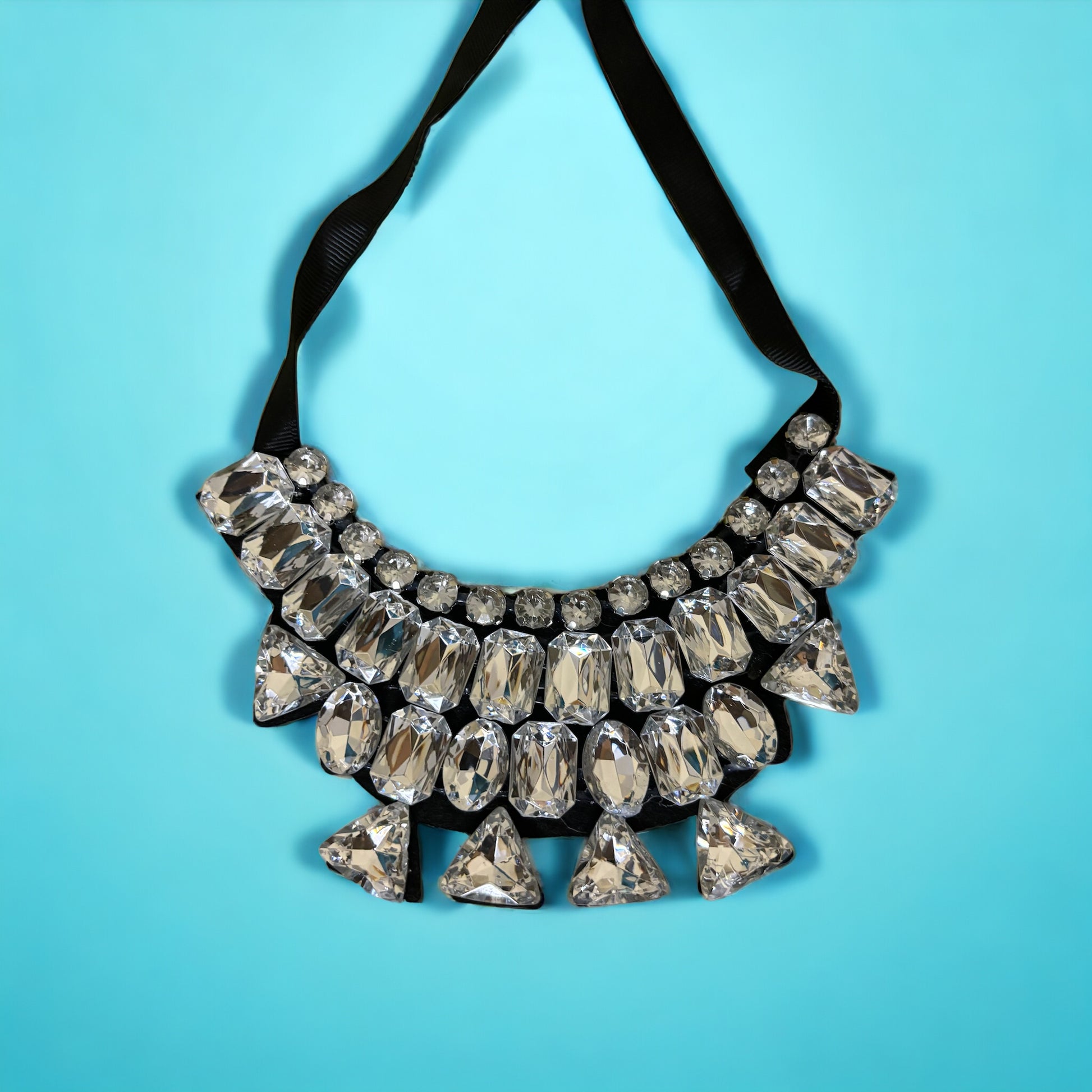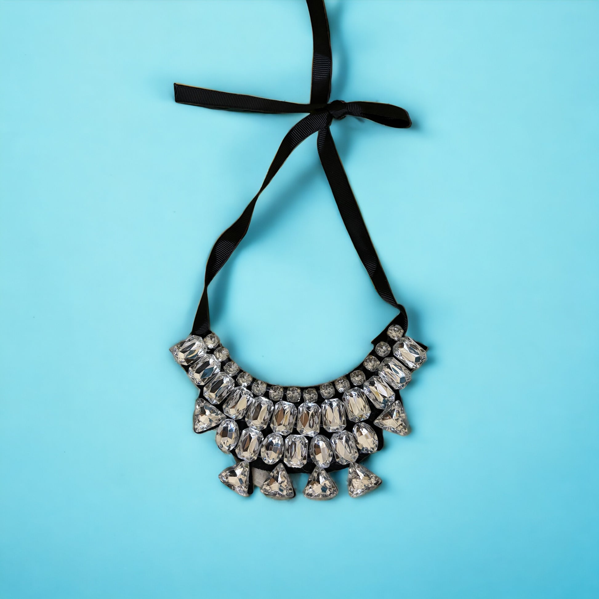 The tie necklace creates an illusion of a fixed collar. Also the rhinestones shine in light and make you the centre of the party.