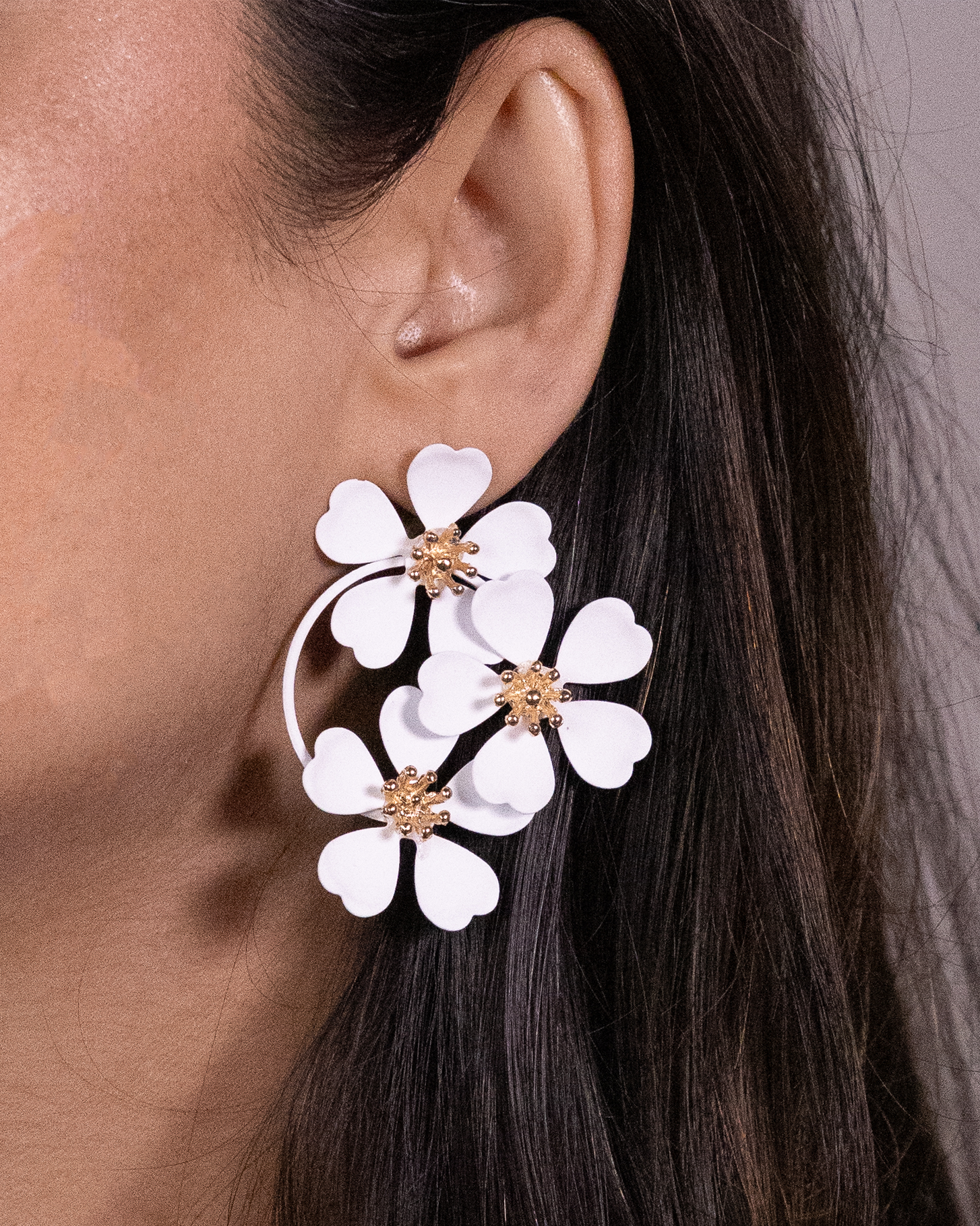 This floral pair of white earrings have a bit of yellow to bring the true nature of spring. They look great when worn during the day.