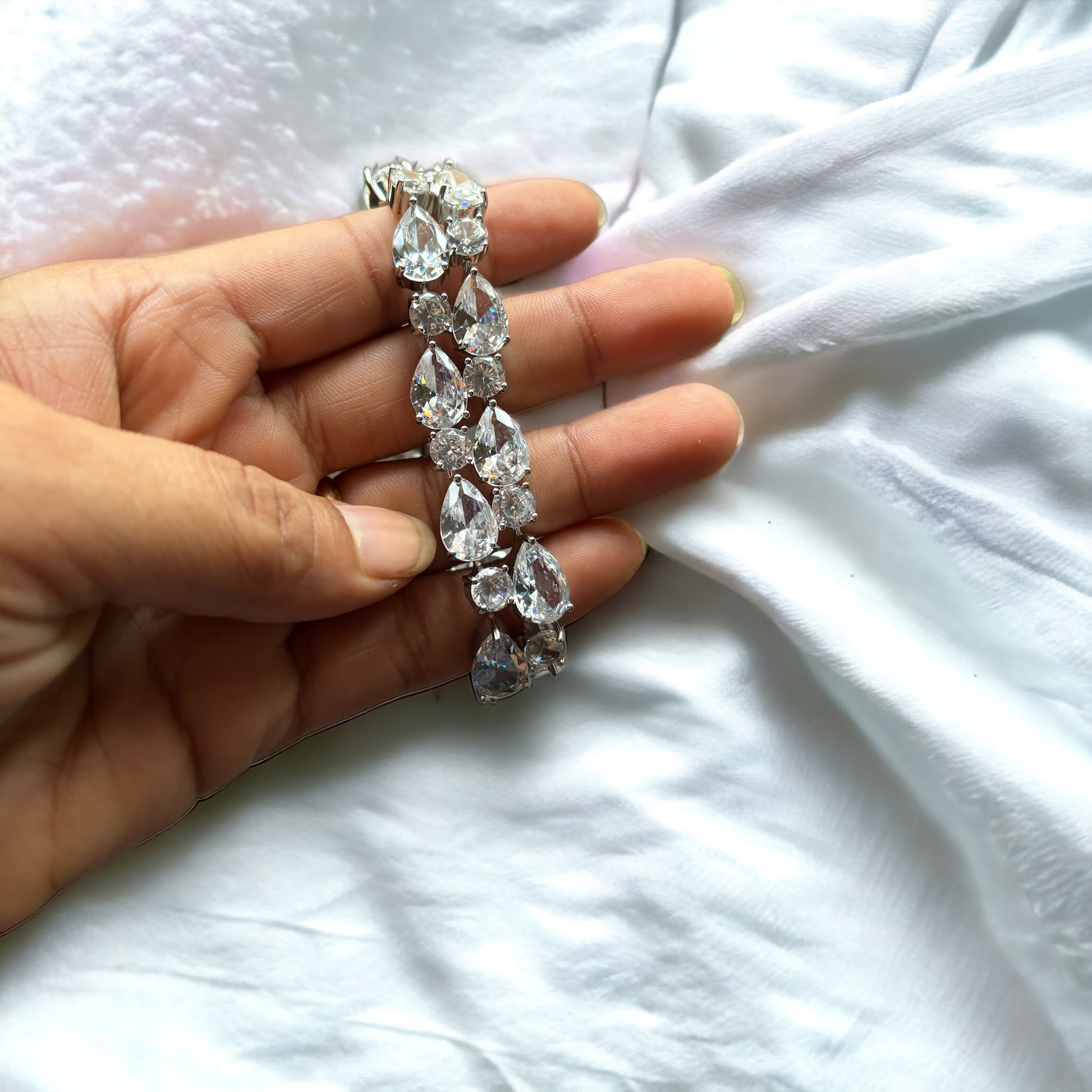 White multi shape zircon bracelet. It catches light and displays a brilliant shine unlike any other.